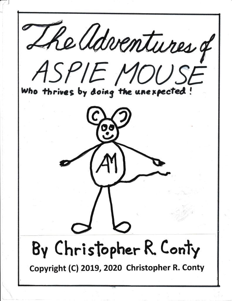 The Preface (Ch. Pre-A) – now complete in its final form – focuses on positive aspects of 27 common traits of Autism. The chapters apply these 27 traits, and show Aspie Mouse’s (and others’) thoughts and feelings when different from what they say (e.g., “I may act brave, but I’m really scared”).